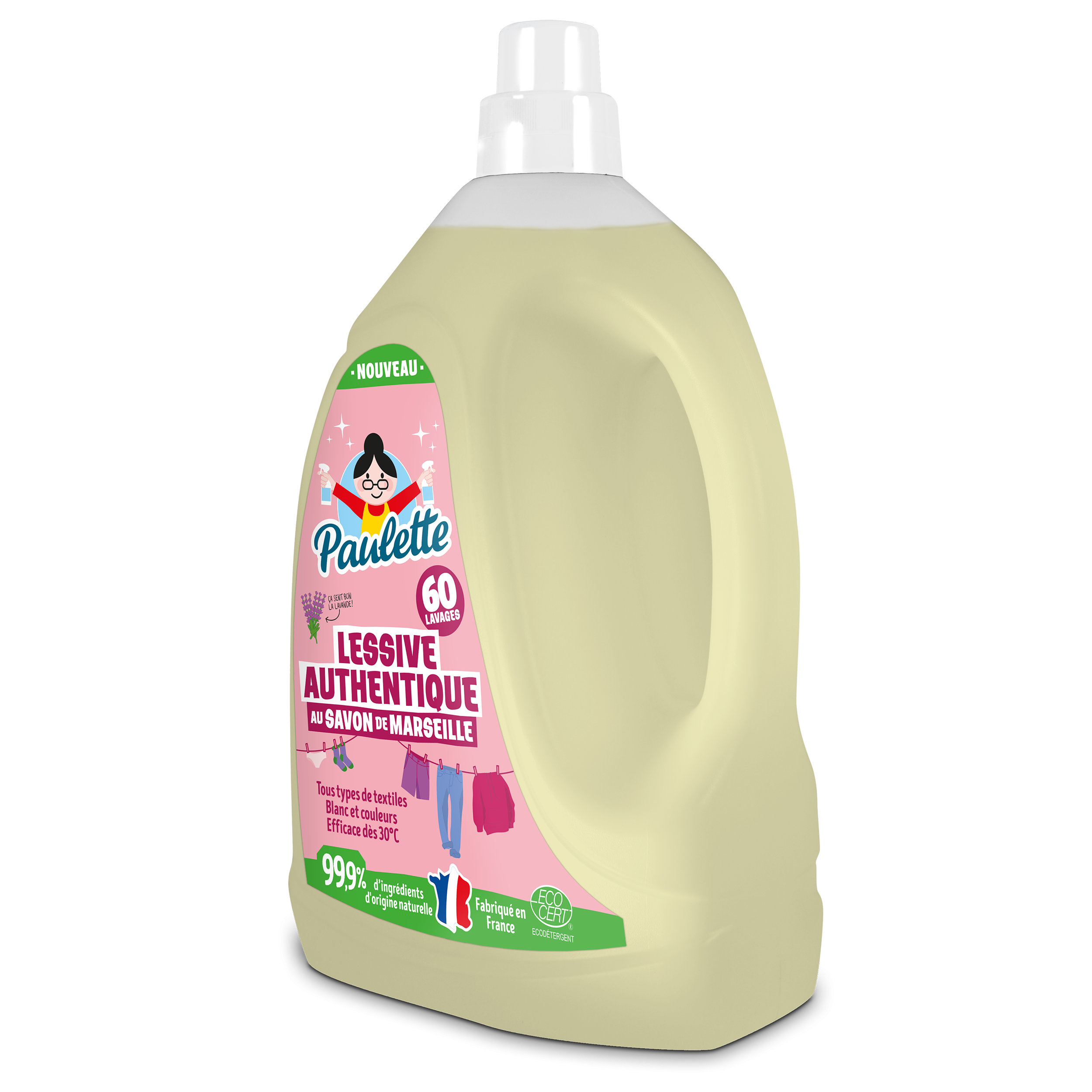 Pour dire ciao les taches, même les plus collées-serrées, fais confiance à la lessive authentique de Paulette au savon de Marseille ! Certifiée Ecocert, fabriquée en France, et concoctée avec une formule 100% authentique, c’est le secret bien gardé des lessives de grand-mère… remis au goût du jour par Paulette, bien sûr !