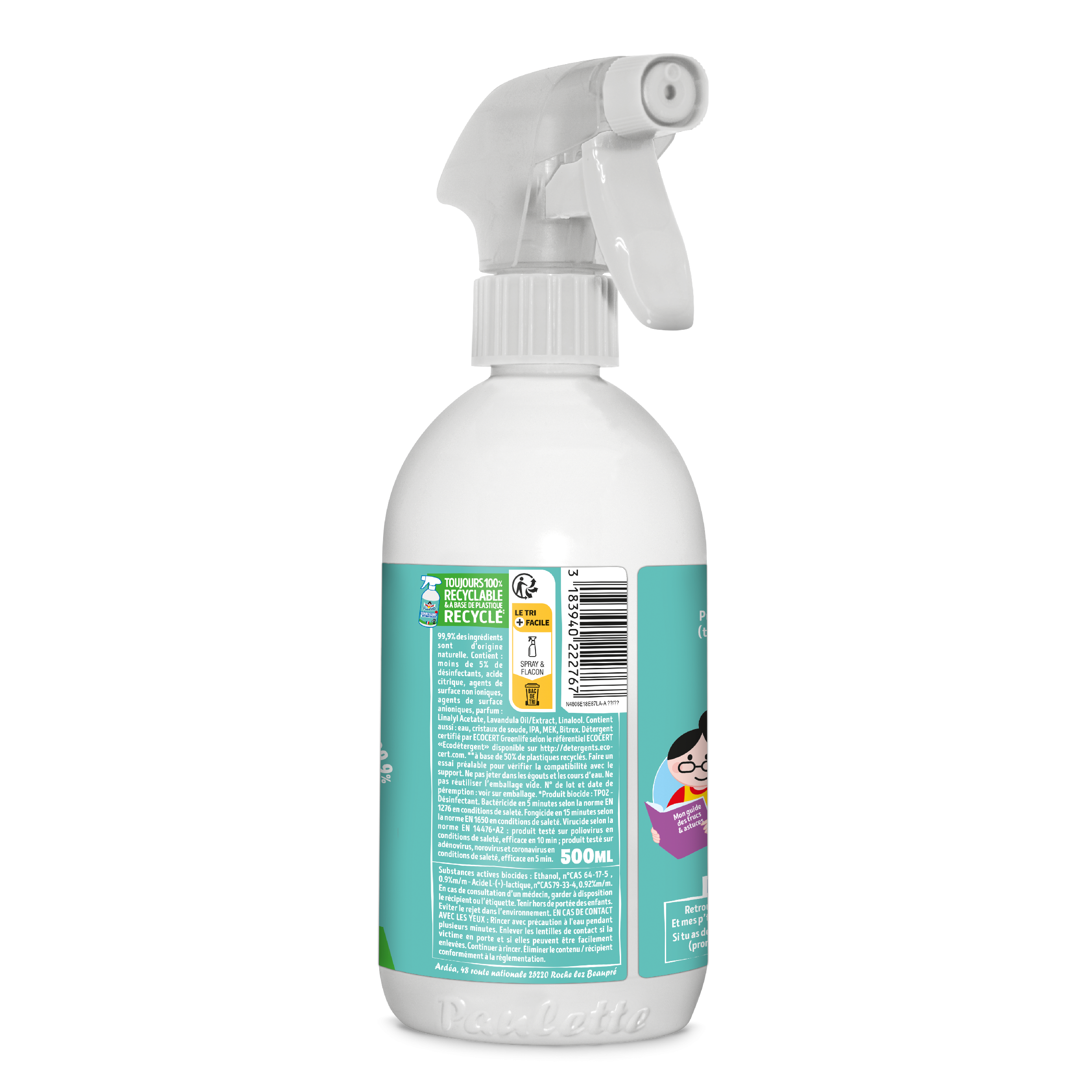Ce nouveau Désinfectant* détartrant de Paulette est vraiment un dur à cuire : il n’hésite pas à sortir les muscles face aux microbes* et au calcaire. Certifié Ecocert et fabriqué en France, il est composé de 99,9% d’ingrédients d’origine naturelle et c’est LA solution pour désinfecter* ta salle de bain tout en la détartrant ! Dans son petit flacon mignon contenant minimum 50% de matière recyclée, il est super costaud et doux pour la Planète.