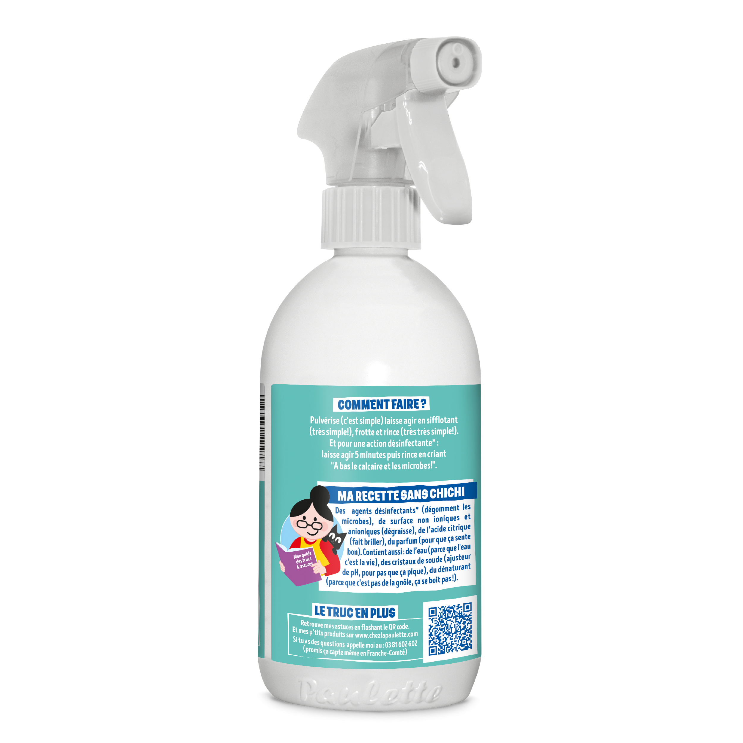 Le désinfectant* détartrant de Paulette, c’est le top de la salle de bain qui resplendit : il nettoie, fait briller, parfume, détartre et désinfecte* toutes les surfaces des sanitaires.