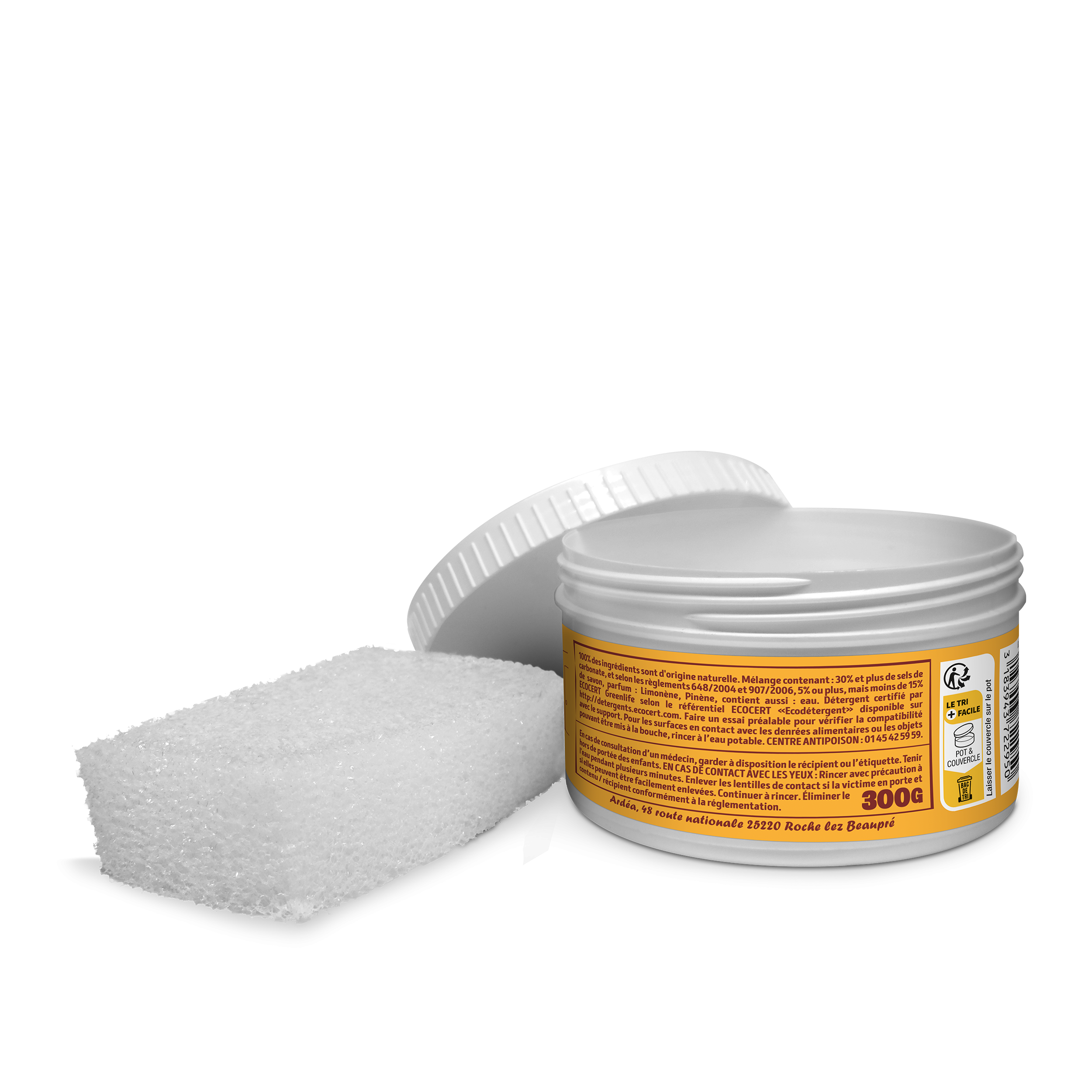 En plus c’est facile : tu humidifies l’éponge fournie dans la boite, tu frottes la pierre, puis tu appliques le produit sur la surface à nettoyer. Rince, essuie et le tour est joué !