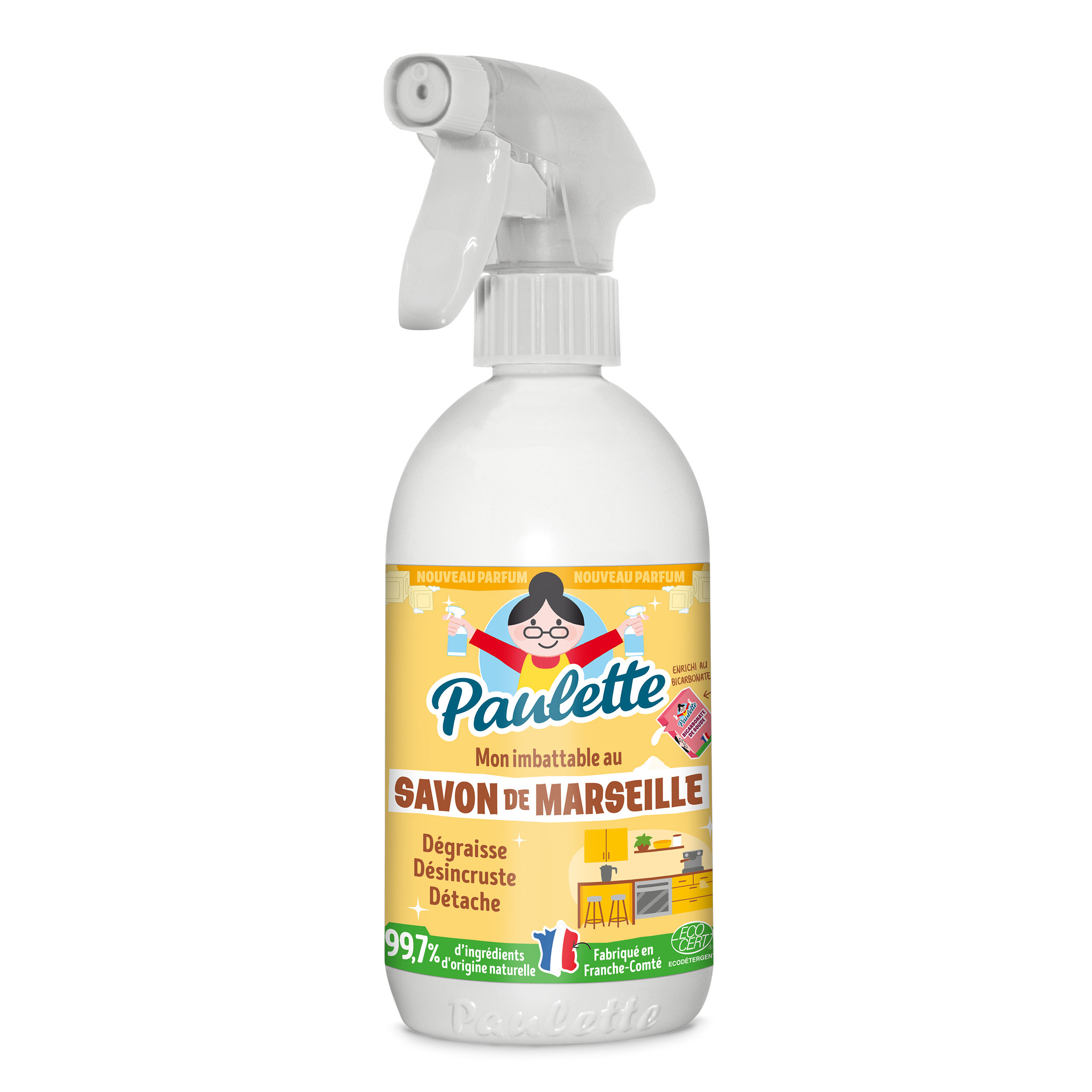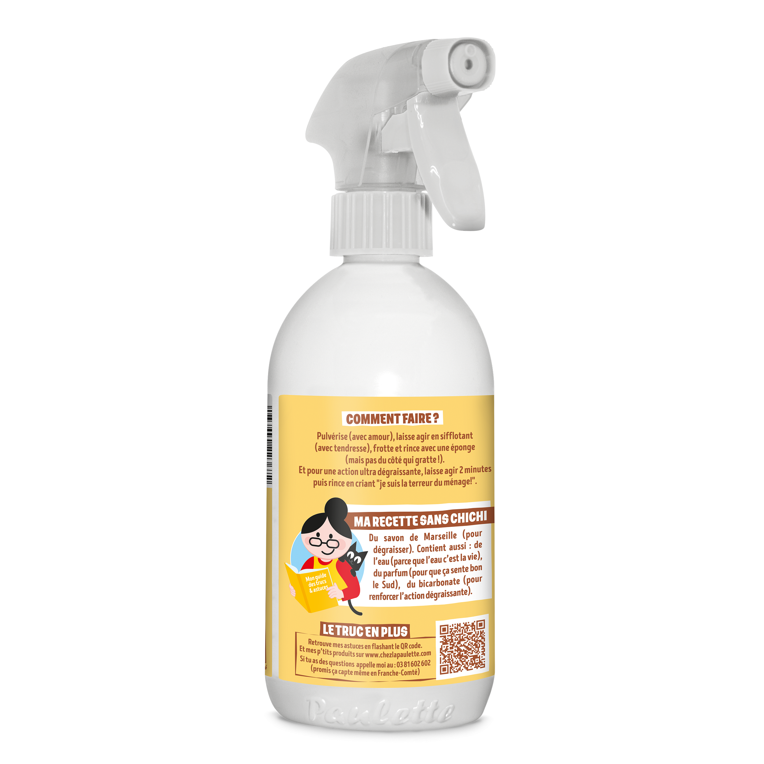 Pour dégraisser à fond, éliminer les taches, désincruster la vilaine saleté, gâcher la vie aux graisses brûlées, tout le gras, le cracra et le douteux, Paulette a une arme redoutable, puissante, et qui sent encore meilleur : Son parfum authentique ajoute une touche irrésistible à son efficacité légendaire. Pulvérise, attends, frotte, rince! Et tu peux admirer toutes les surfaces de ta cuisine et sentir le propre dans ton salon… On dit merci qui?? Merci Paulette!