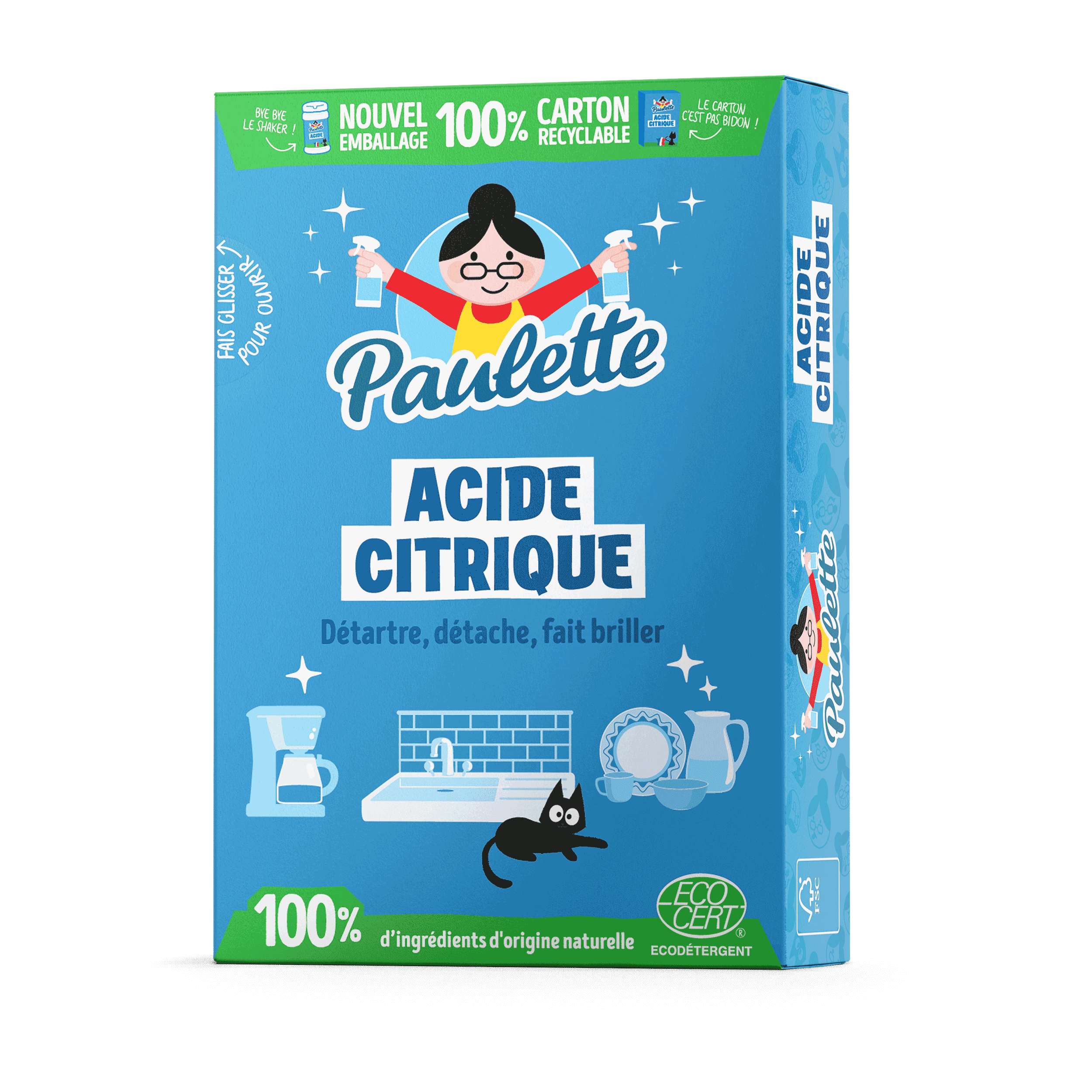 Avec son Acide citrique en poudre super puissant, Paulette te propose une solution efficace contre le calcaire et les traces de rouille. Certifié Ecocert, authentique, pratique, il a tout d’un grand dans son shaker super mimi. Produit aux multiples usages, il est fabriqué en France et utilisé depuis des générations, preuve de son efficacité, foi de Paulette!