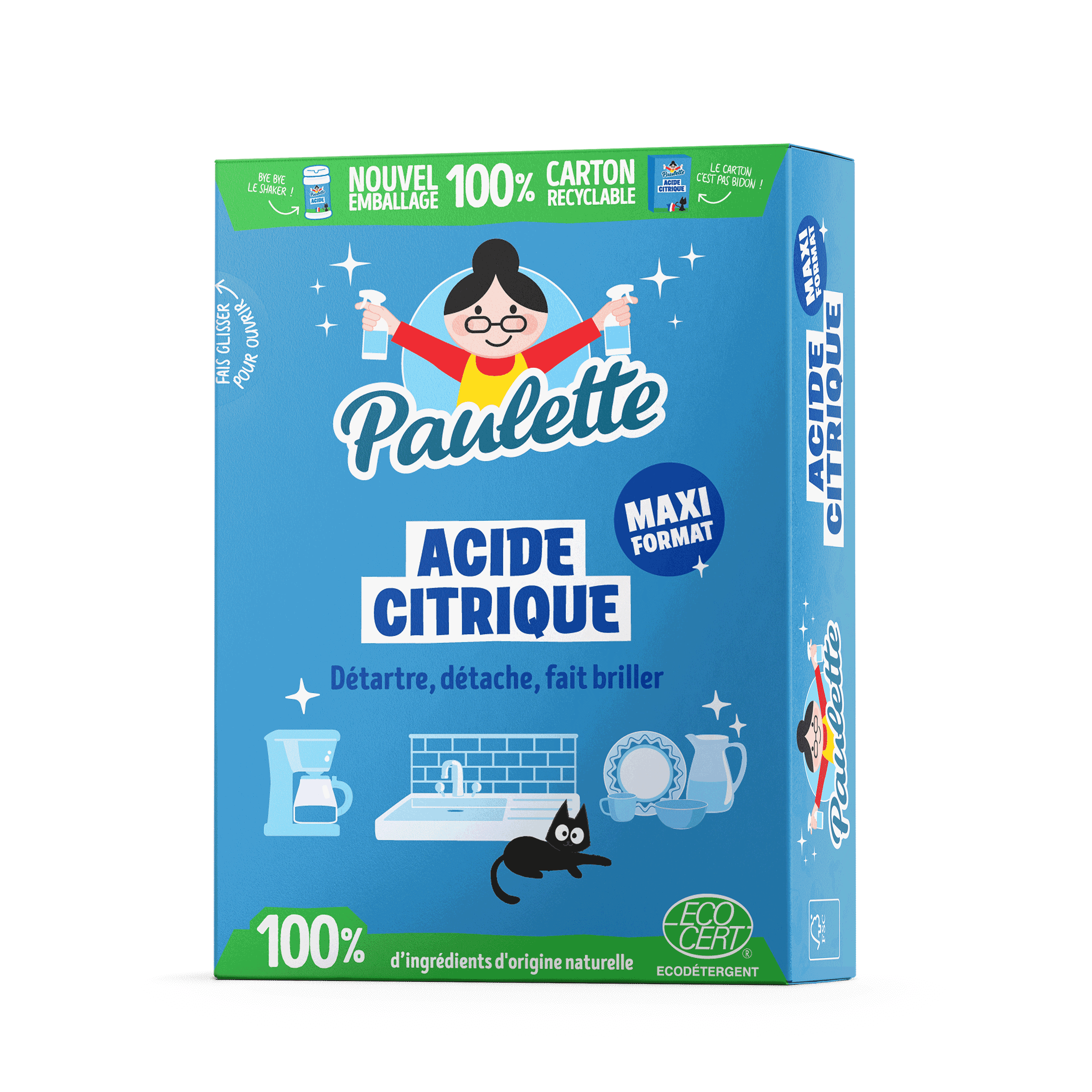Avec son Acide citrique en poudre super puissant, Paulette te propose une solution efficace contre le calcaire et les traces de rouille. Certifié Ecocert, authentique, pratique, il a tout d’un grand dans sa boîte super mimi. Produit aux multiples usages, il est fabriqué en France et utilisé depuis des générations, preuve de son efficacité, foi de Paulette!